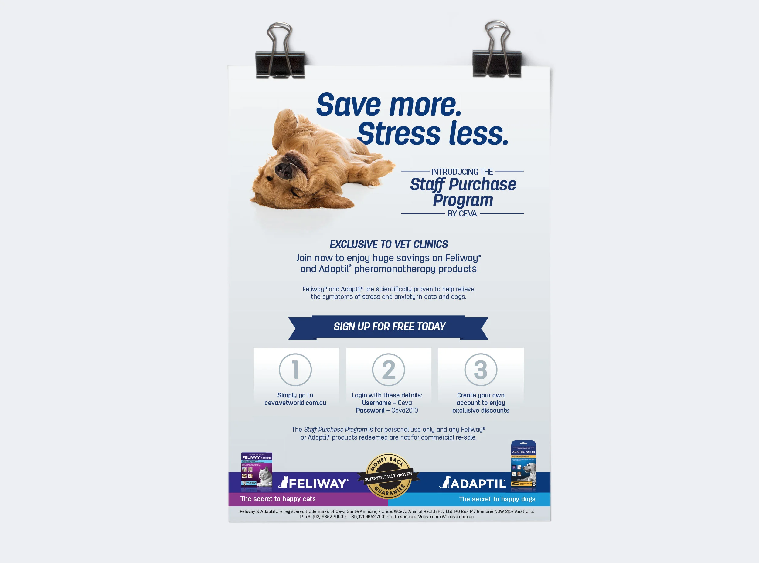 Collateral for veterinary hospitals to assist pet owners in identifying and reducing possible misunderstandings as well as encouraging them to try CEVA.