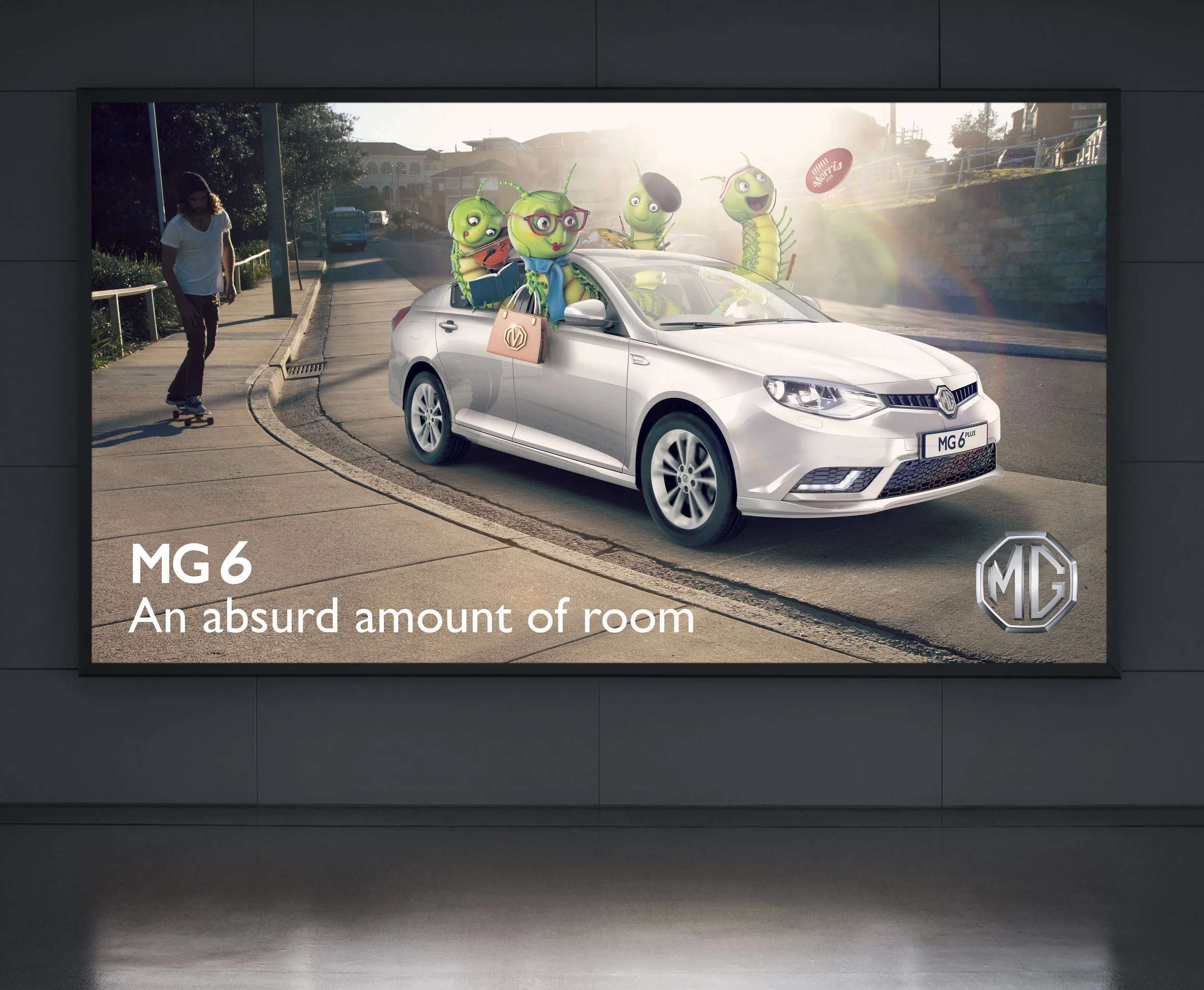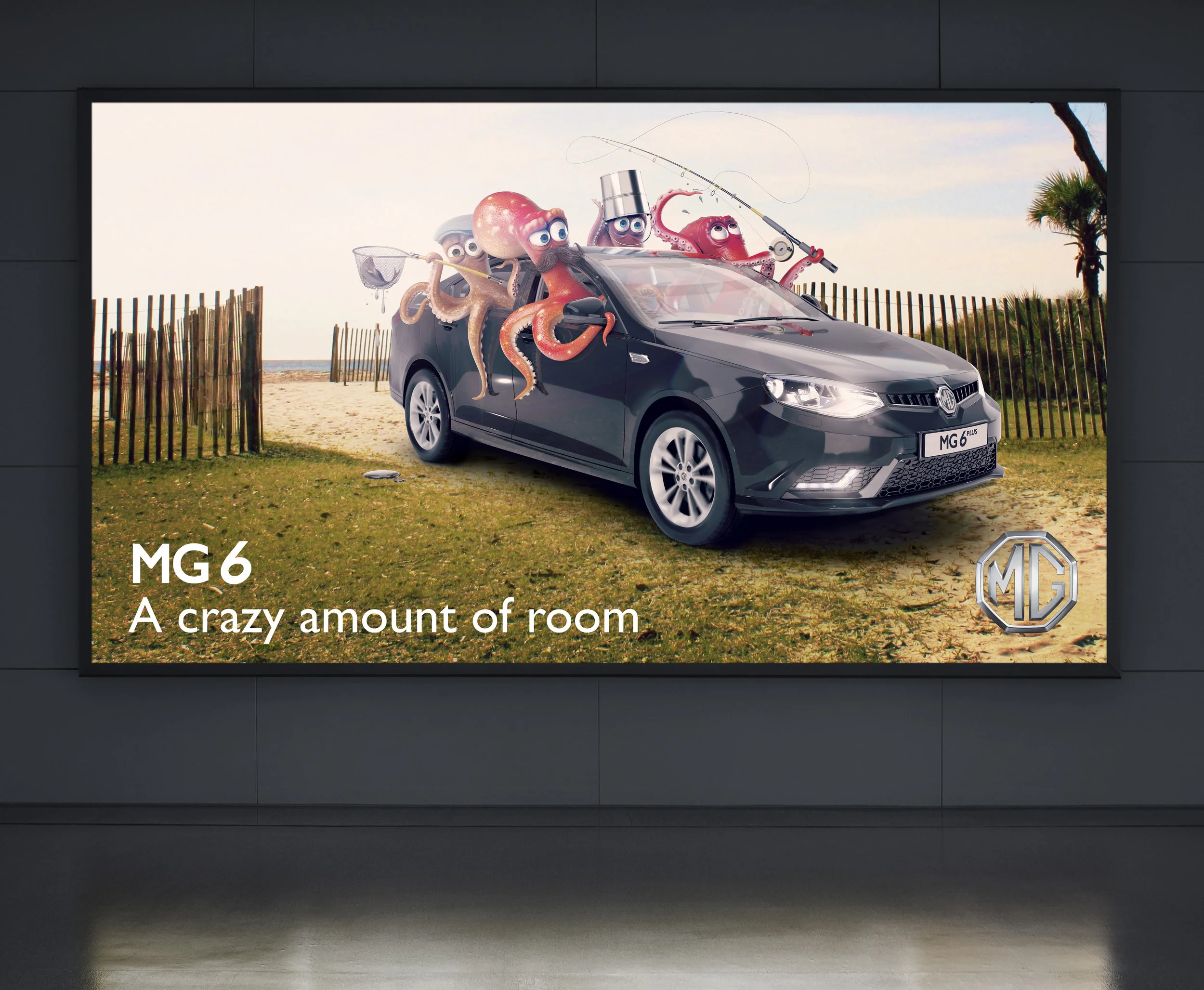 The MG6 was competitively priced to beat other large cars (as well as many small cars) so we recognised that it would be the perfect fit for people wanting to make the transition from small to large without breaking the bank– families. The main reason for this upgrade is extra space. Room for holidays, sport, friends, shopping... MORE. Our concept dramatised this reason to buy, featuring families of outrageous animals with extra limbs and proportions and delivering a fun and unusual visual.